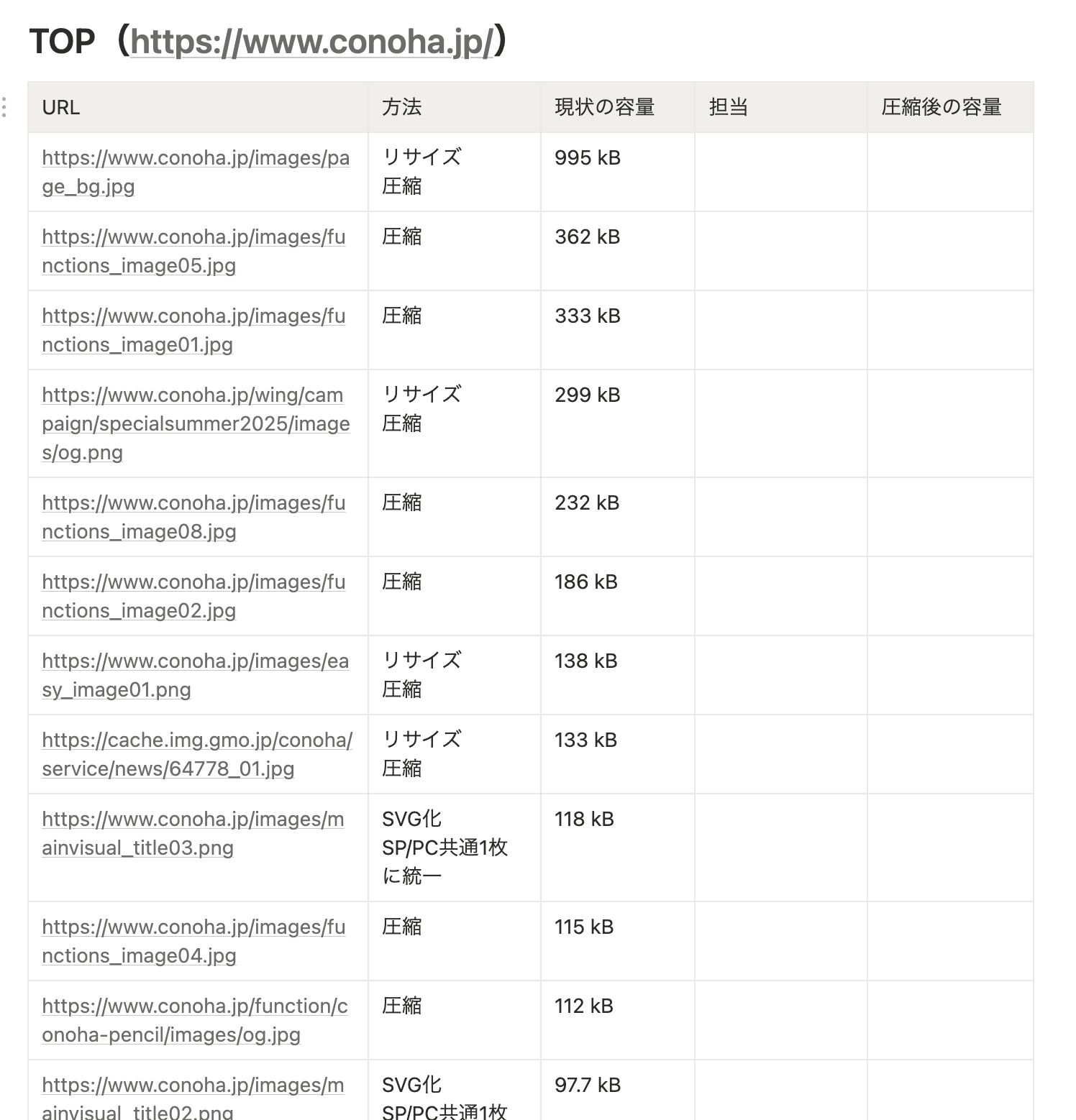 重い画像がどれか分かったので、重い順から、以下の方法で軽量化を実施することに👇
