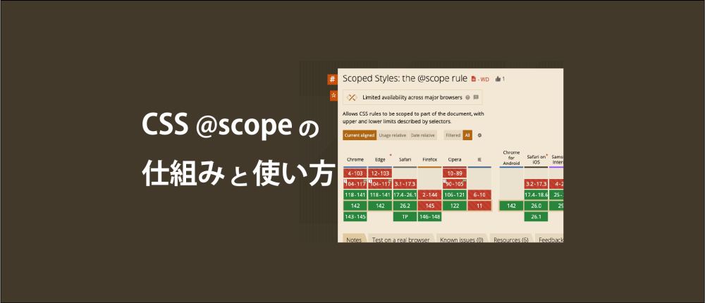 最近、CSSの新機能 @scope が主要ブラウザでほぼ揃ってサポートされるようになってきました。