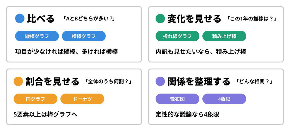 目的が決まれば、グラフ選びはほぼ自動で決まります!