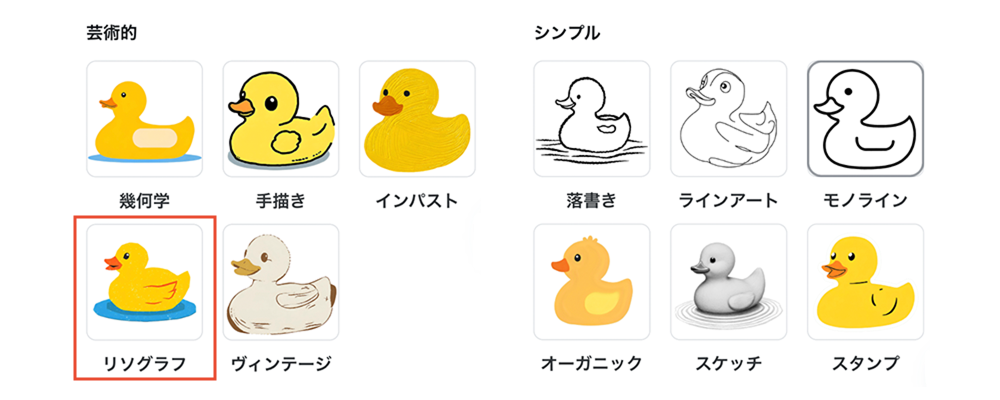今回は「リソグラフ」というテイストで生成してみました。手書き風のイラストが好きな方はおすすめです!