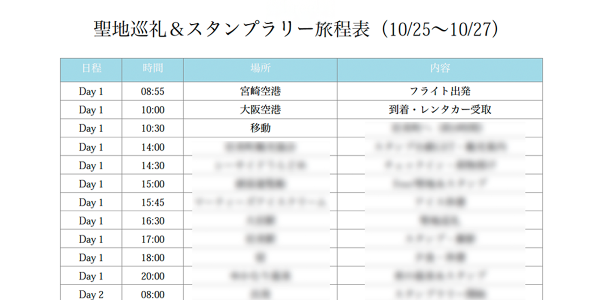 今回は好きな作品の聖地巡礼ということで行きたい場所がとにかく多かったので、スケジュールを整理するのが大変でした。