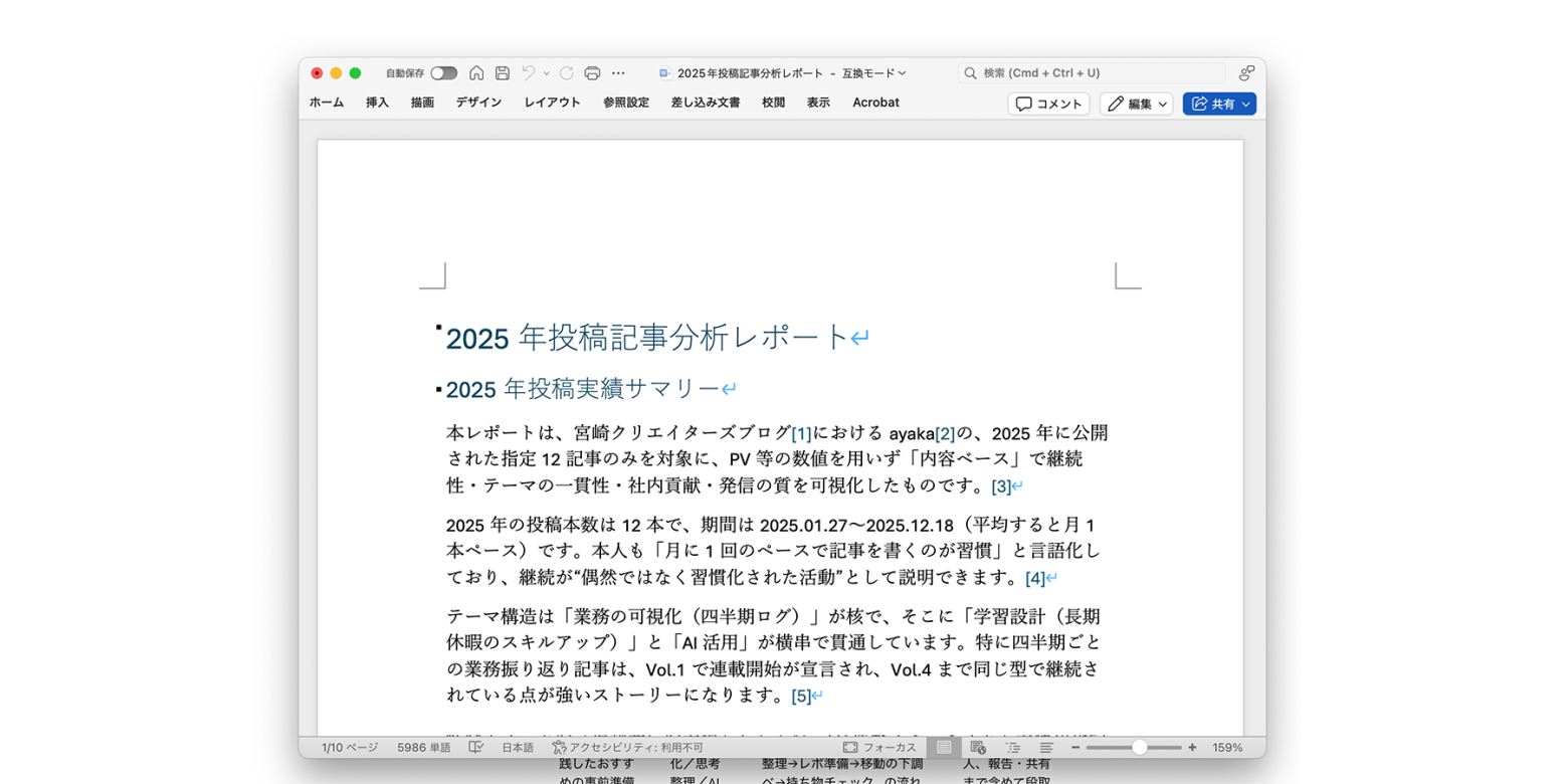 最終的には、AIがきれいな「分析レポート」としてまとめ上げてくれました。