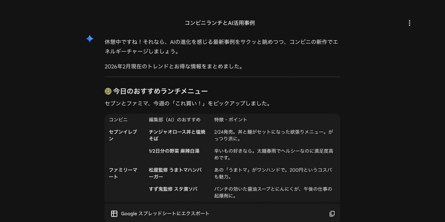 ここでもGeminiに「おすすめランチメニュー」を提案してもらいました!