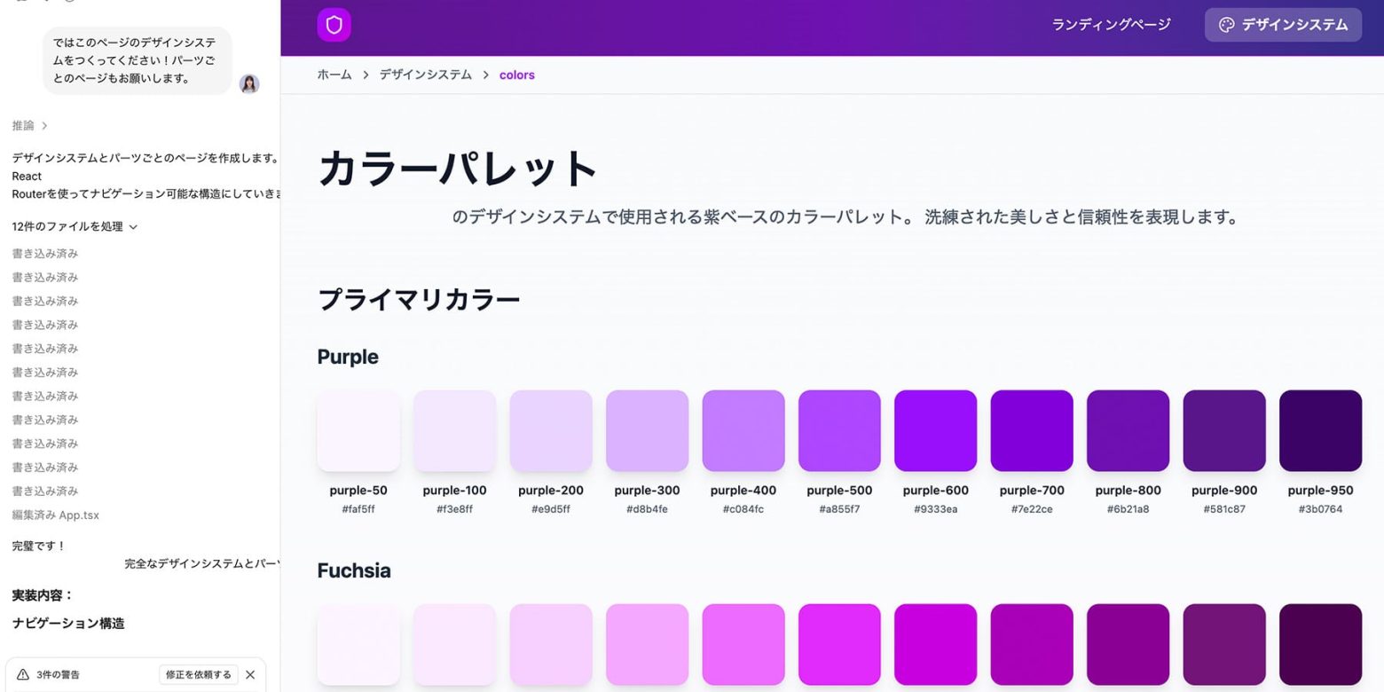 カラーパレットの生成など、細かい指定やちょっとした「無茶振り」にもAIはしっかり応えてくれました。