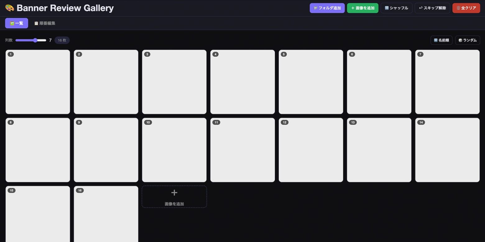 インターンシップの際に実際にこちらのツールを使用したのですが、元々学生の皆さんにバナー制作を体験していただく予定だったので、制作したバナーをモニターに映すのであれば、「一覧で表示したり、ランダムに入れ替えて大きく表示できるツールがあれば便利かも?」と思いたち、試しに作ってみることにしました。
