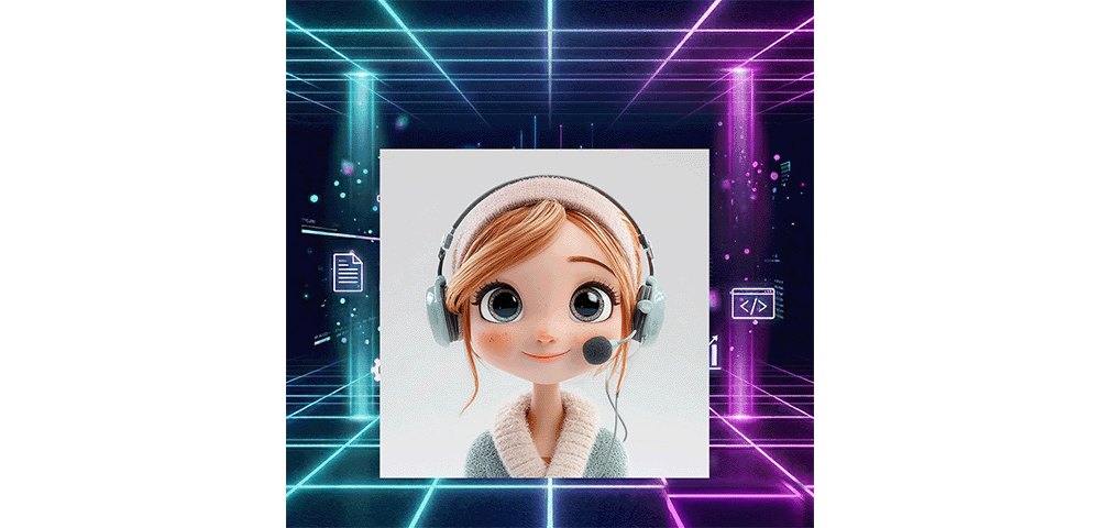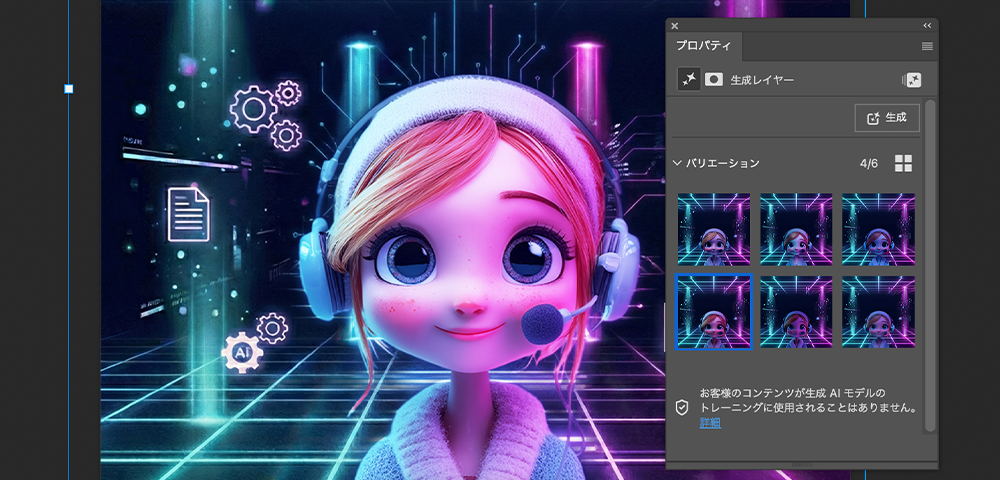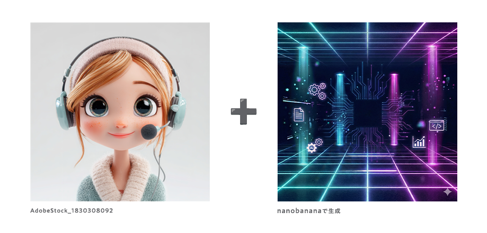 20分バナーのお題に沿って「AI」をイメージして生成した背景に、3D風の女の子の画像を重ねます!