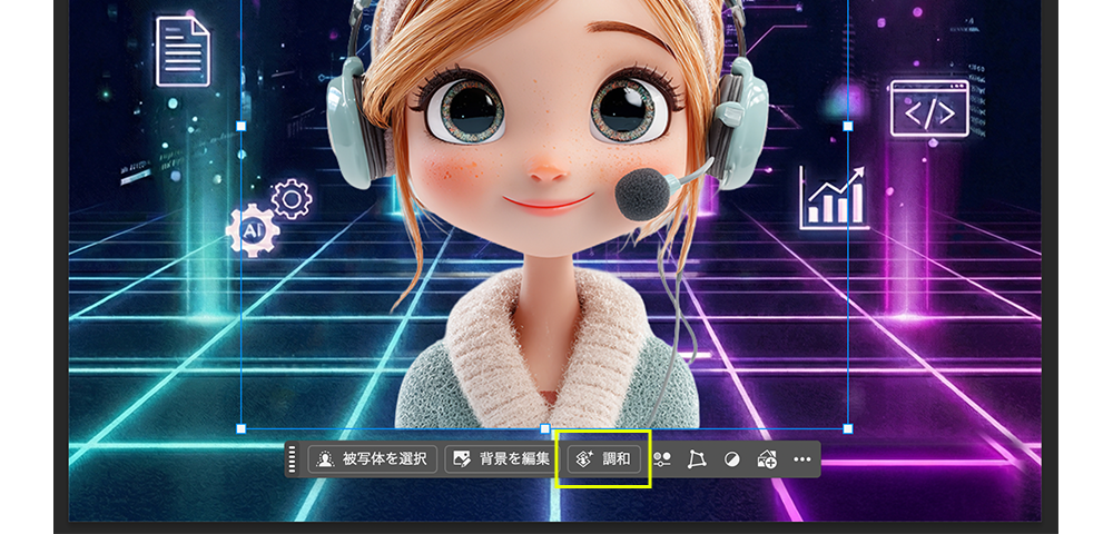 調和は、合成した素材を背景の色味や明るさに合わせて、自動でトーンを整えてくれる機能です。