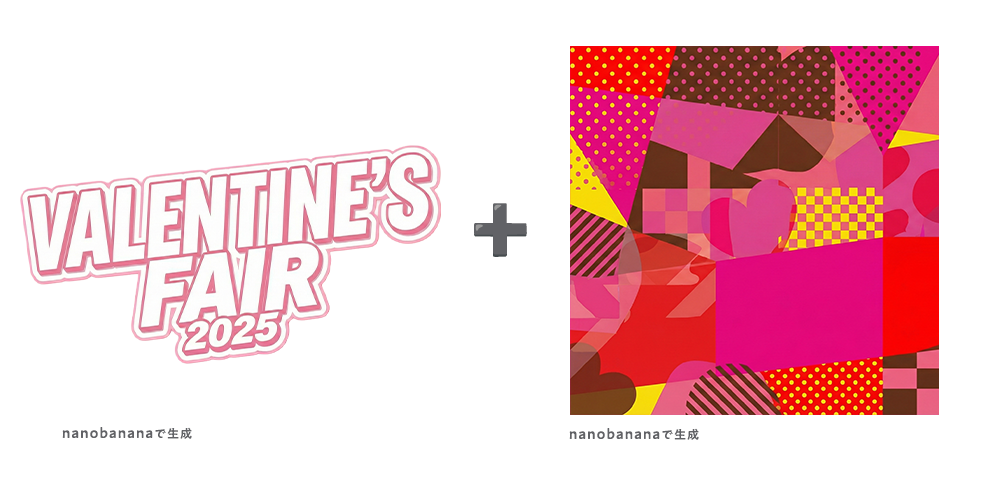 続いて、20分バナー企画で制作したバレンタインフェアのバナーに、AI生成のタイトルロゴを組み合わせた事例をご紹介します!