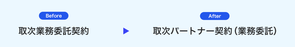 「取次業務委託契約」から、契約形態は「取次パートナー契約(業務委託)」など内容を保ちつつ噛み砕いた表現へ