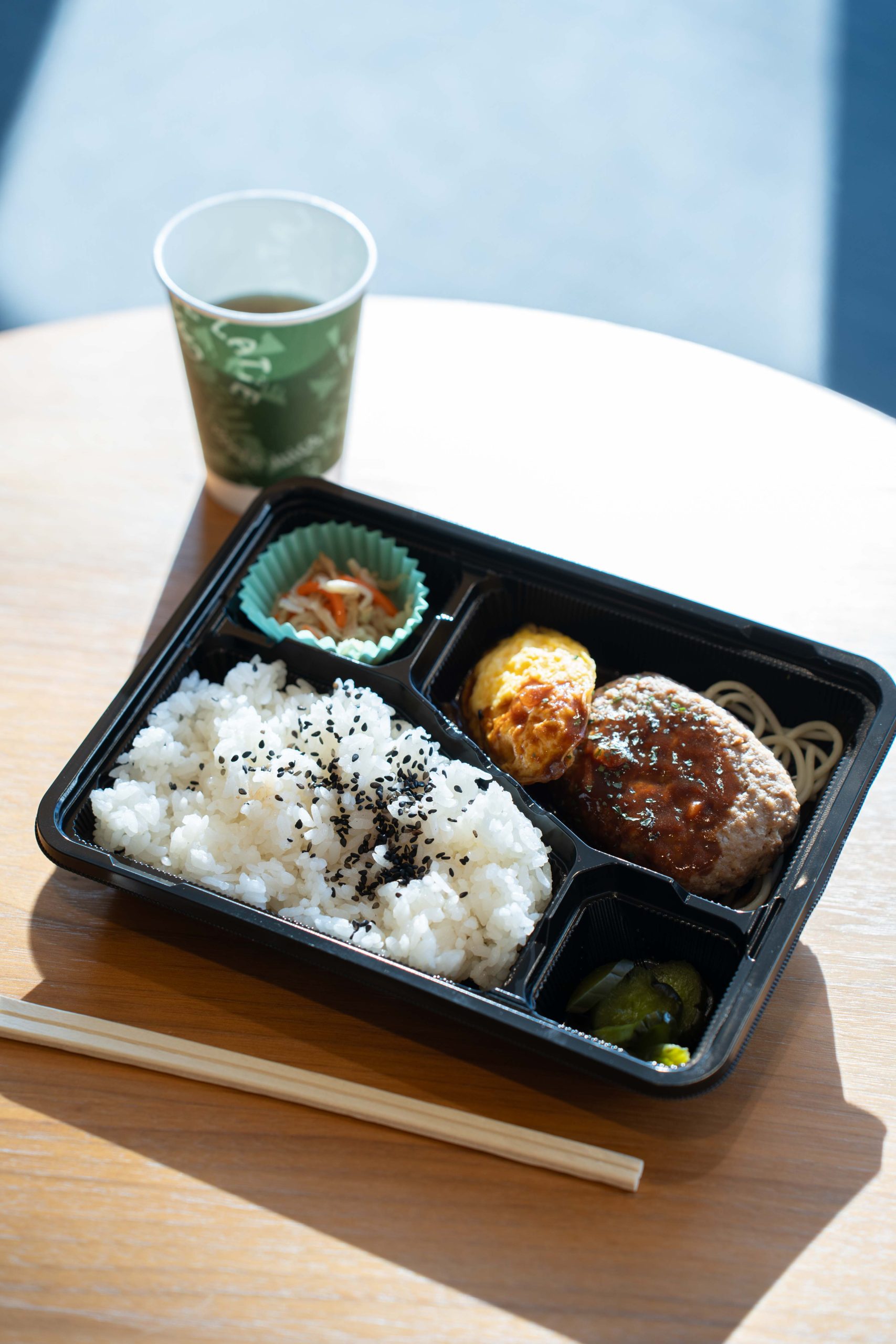 お弁当の対角線上にコップを配置したり、箸を添えることで画面全体のバランスが整い、生活感のある自然な雰囲気が生まれました。