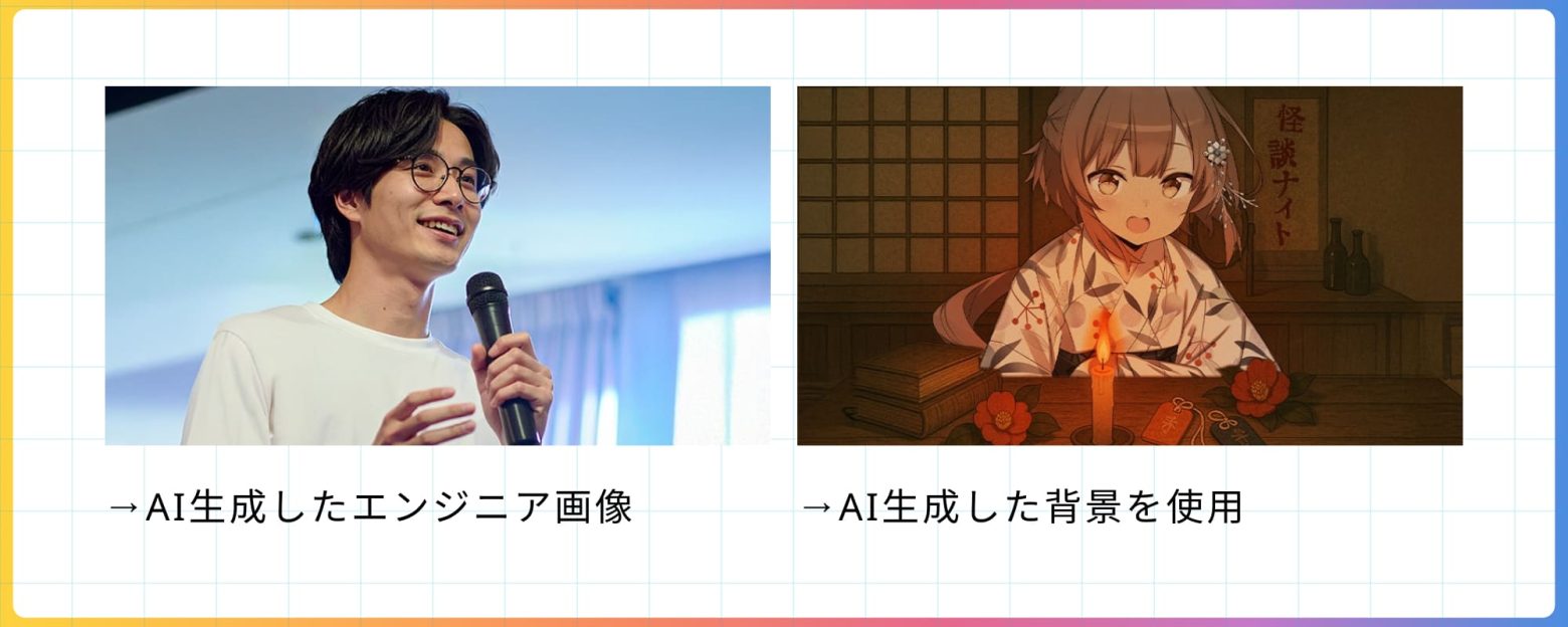 このようにAIでオリジナルの背景イラストを作成することで、限られた時間でも質感のあるビジュアル素材を用意できました。
