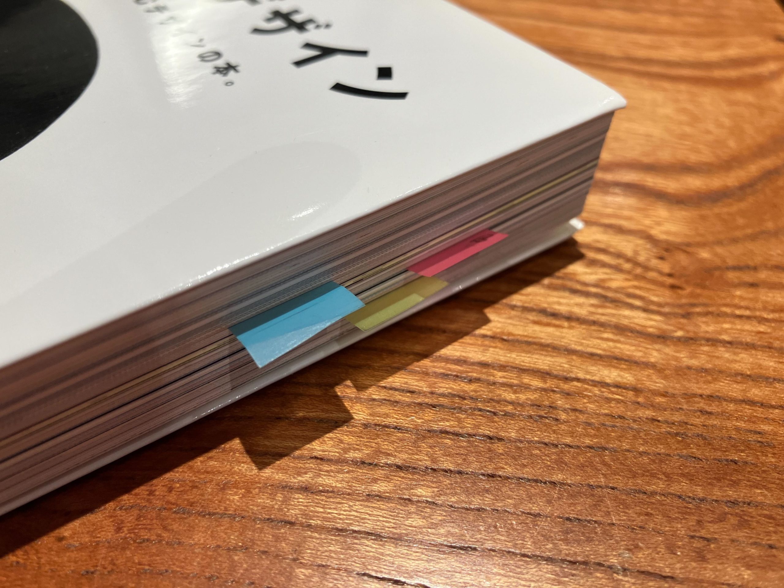 ページの横に貼られた付箋がそのまま残っており、その付箋のほとんどが「色」に関する章に集中していました。