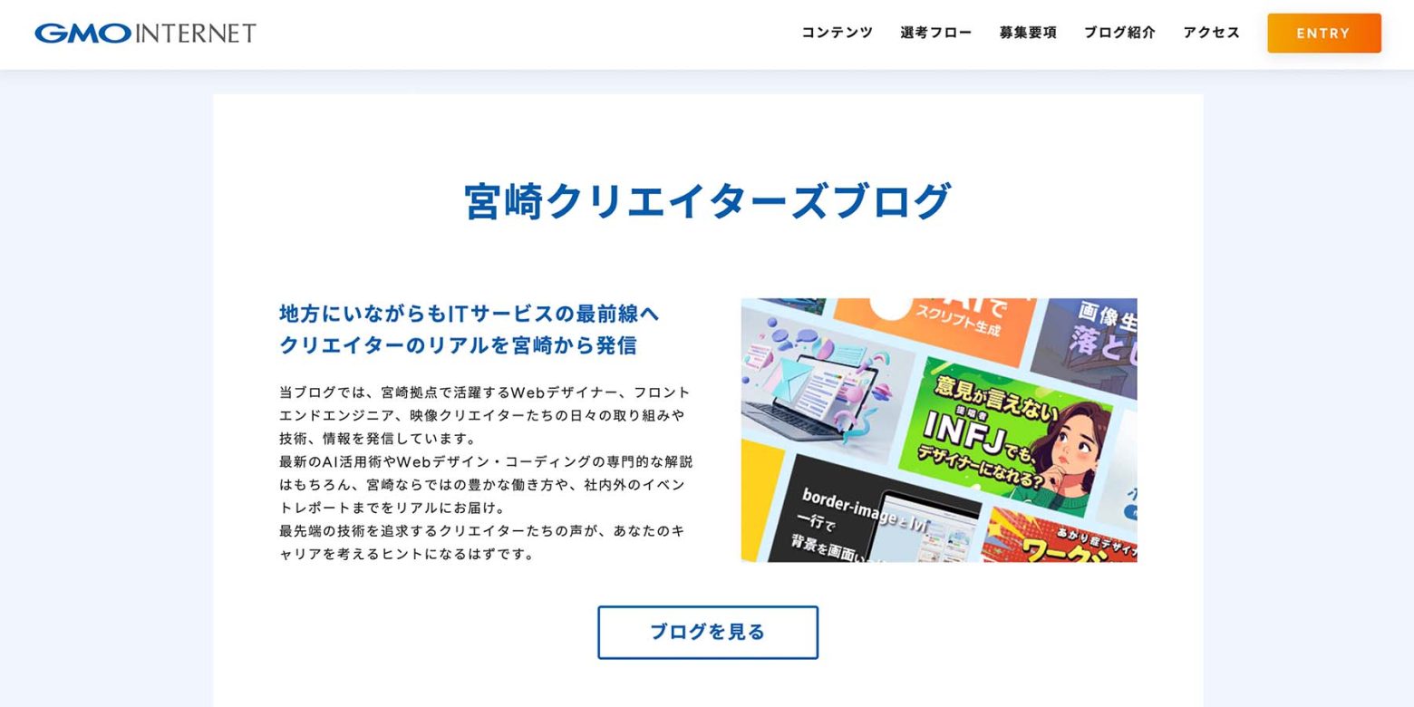 インターンシップLP内のコンテンツとして、当ブログ「宮崎クリエイターズブログ」への導線セクションの内容設計も行いました。